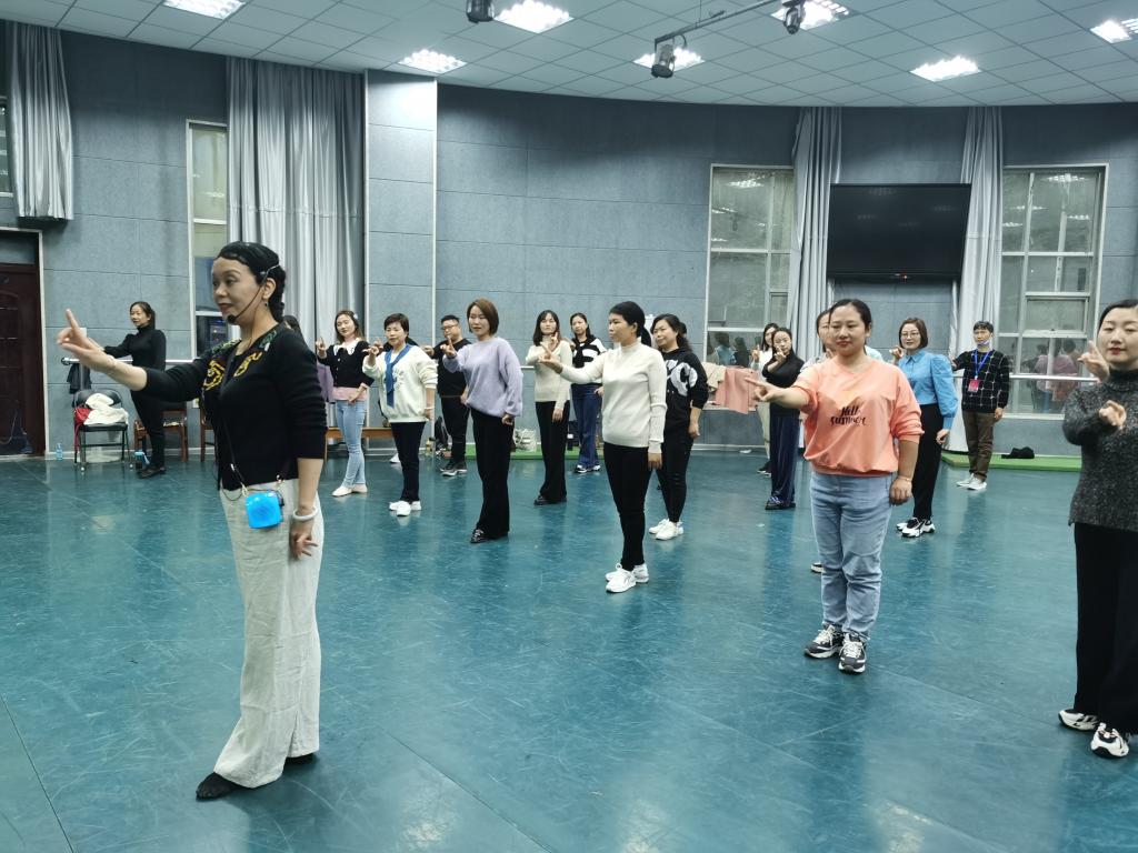 2021年10月26日下午,我院郭德华教授在艺术楼106舞蹈教室为本次省培学员讲授《舞台表演》,把理论与实践结合,让学员们体会到舞台表演的魅力。