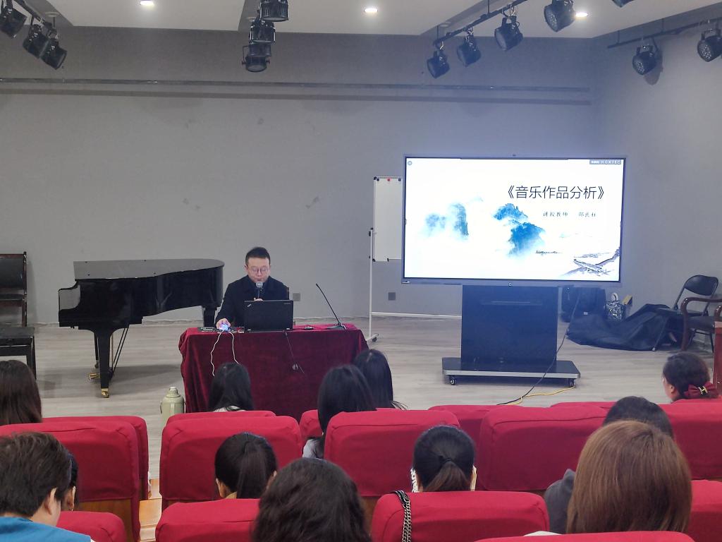 11月1日上午,我院教师邵良柱在艺术楼八音讲堂为本次省培学员讲授《音乐作品分析》,使学员能够真正了解音乐的内涵。