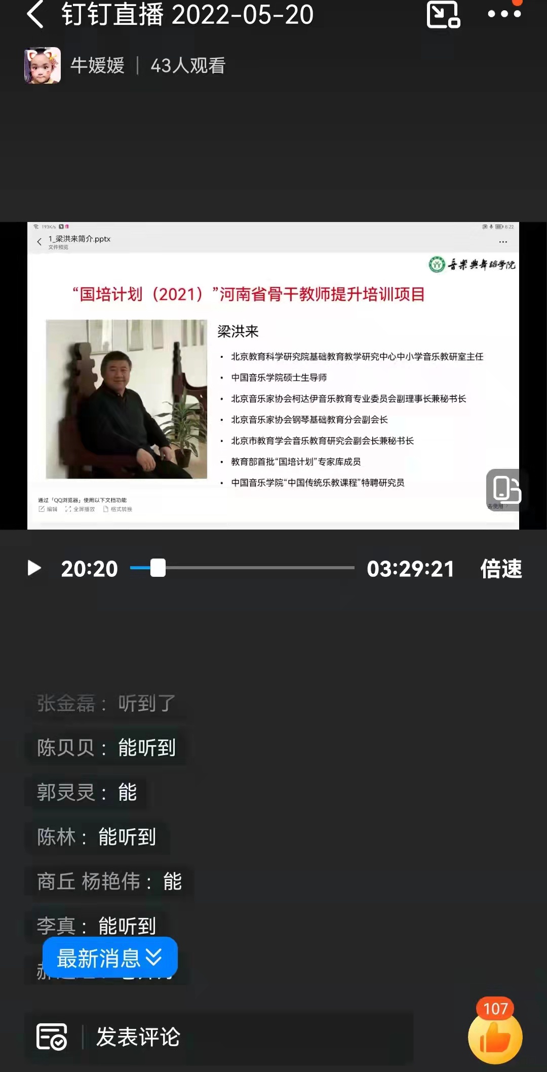 5月20日,应太阳集团tyc234cc之邀,北京教育科学研究院梁洪来教授为国培计划——县级骨干教师提升培训小学音乐教师培训班学员讲授《指向学生音乐能力提升的教学设计》。由于疫情防控,本次采用线上授课。