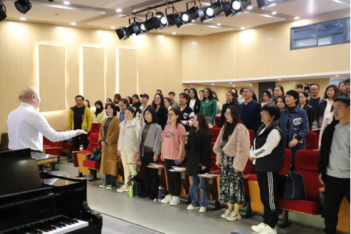 2023年3月14日,应我院之邀,合唱指挥家陈家海为“国培计划(2022)”—农村骨干教师能力提升培训项目—市级骨干教师培训初中音乐班学员讲授《以唱代训——合唱发声的基础训练》,我院部分师生旁听学习。