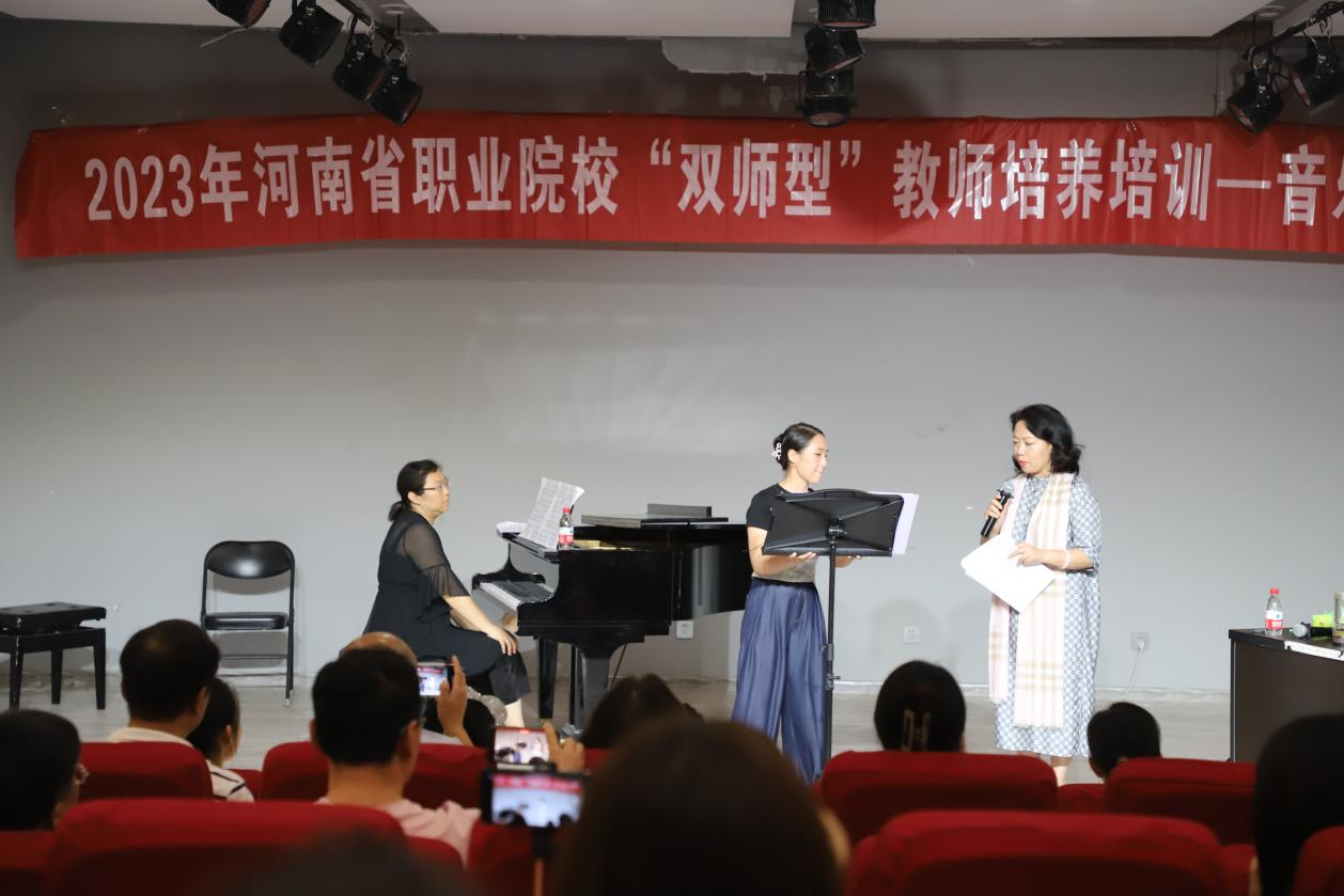 应太阳集团tyc234cc之邀,7月17日,河南大学声歌系主任黄慧慧教授在艺术楼八音讲堂为本次参加培训的学员讲授《歌唱中的形象塑造》同时对6位学员进行一对一声乐指导。本次课程由太阳集团tyc234cc副院长任远主持。