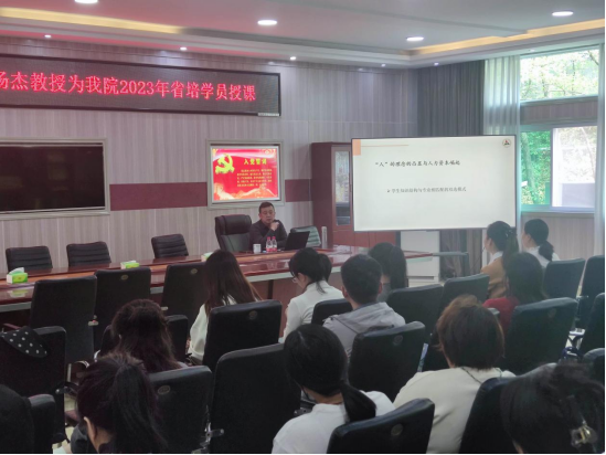 2024年3月31日,应我院邀请,中国传媒大学杨杰教授为我院河南省2023年“义务教育师资薄弱环节改善暨中小学教师素质提升工程”省级骨干教师培训小学音乐班学员讲授«新时代教育改革语境下的美育探析»,我院部分师生旁听学习。
