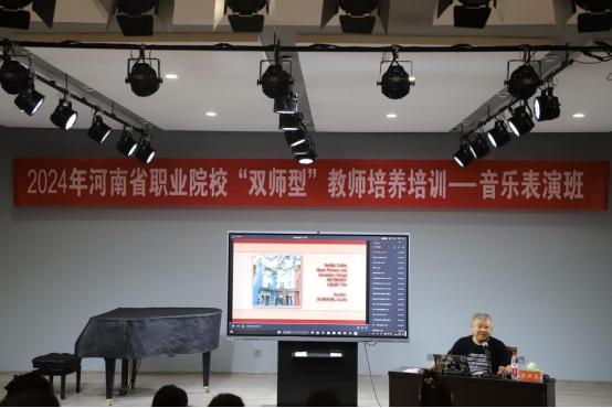 2024年7月10日,应我院之邀,北京教育科学研究院梁洪来教授为2024河南省“双师型”教师培养培训音乐表演班学员讲授《指向学生核心音乐能力提升的音乐教学》,并分享了自我的研究成果,与学员们进行积极的探讨。
