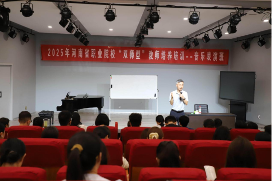 7月14日。郑州大学河南音乐学院副院长陈新宇教授在艺术楼八音讲堂为本次“双师”学员讲授《合唱指挥》