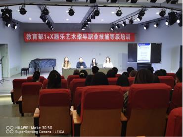 培训会由获教育部1+x器乐艺术指导培训师资格的栗树、张梦晗、史昀冉三位老师给大家分享交流,三位老师分别就《关于在院校实施“学历证书+若干职业技能等级证书”制度试点方案》文件、1+x器乐艺术指导职业技能等级证书及标准、考试流程和考核内容等几方面进行了详细地阐述和解读。副院长任远强调了本次培训与和考核的重要性、实用性和价值性,也对学生们提出了具体要求,叮嘱同学们认真备考、展现自我,期望顺利通过考核。培训会现场同学们深受鼓舞,纷纷表示将勤学苦练、增强本领,圆满完成培训任务。