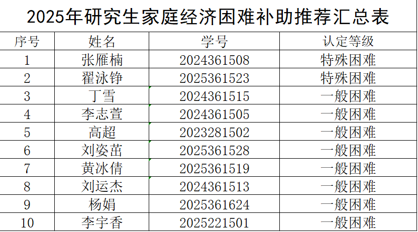 根据我校临时特殊困难补贴的申请要求,经学生本人申请,学院资助工作领导小组初审,综合学生本人、家庭成员、家庭经济状况以及本年度获其它助学金等情况,现将拟资助学生名单予以公示。