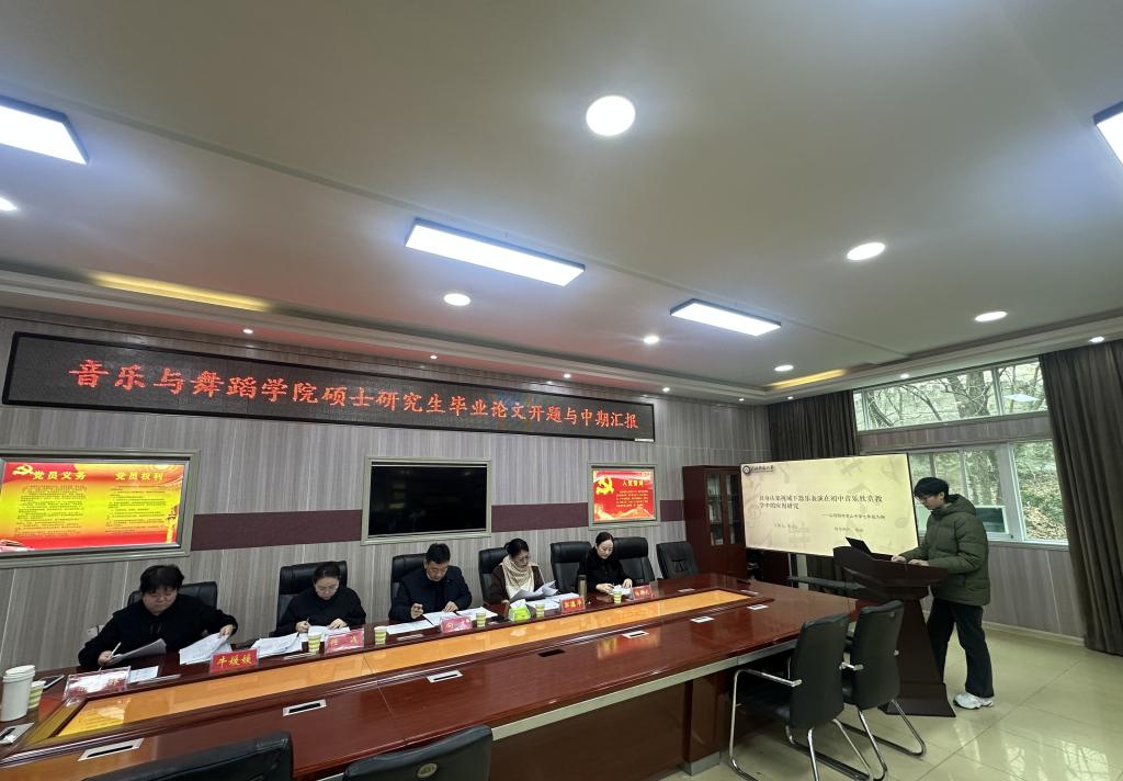 2026年1月10日上午八点半,2023级、2024级硕士研究生毕业论文开题与中期汇报在艺术楼三楼会议室、教九楼108、艺术楼八音讲堂如期开展,本次汇报会特邀向文教授、马志飞教授、韩冰教授担任答辩主席,全体硕士导师均出席会议,汇报会由任远副院长主持。