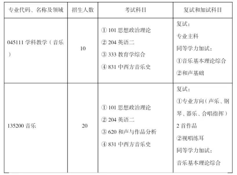 音乐与舞蹈学院全日制专业学位硕士研究生招生专业目录