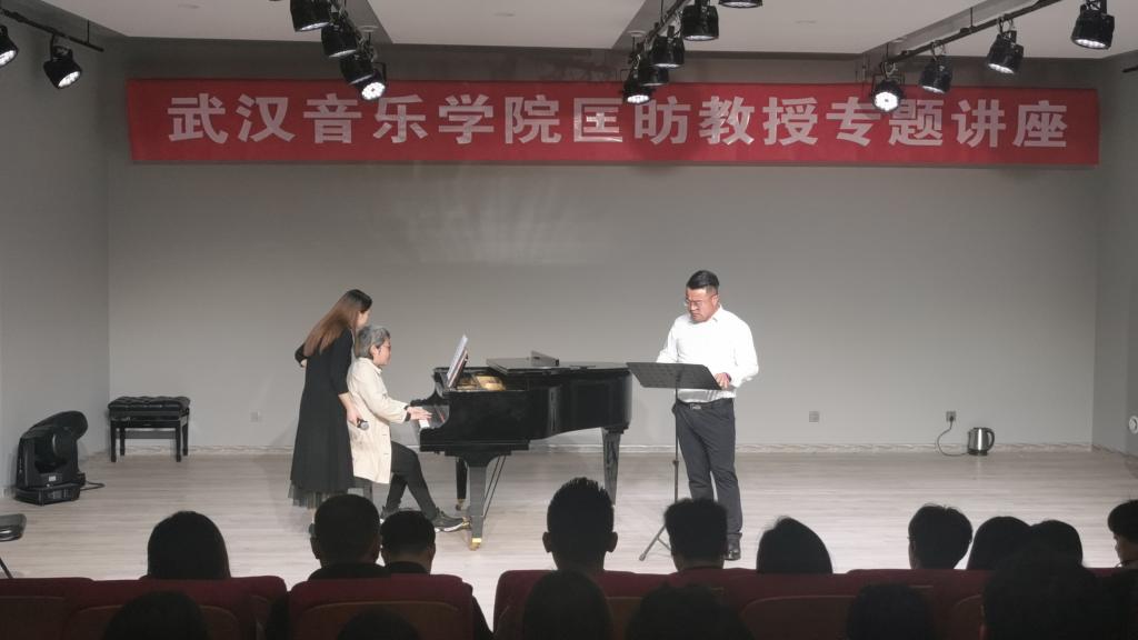 4月28日,为提高学生的专业能力与音乐素养,应我院邀请,武汉音乐学院硕士研究生导师匡昉副教授在艺术楼八音讲堂做了题为《声乐与钢琴合作艺术》的专题讲座。学院声乐、钢琴教研室与两百余名声乐、钢琴主修学生一起聆听了讲座。讲座由副院长任远主持。