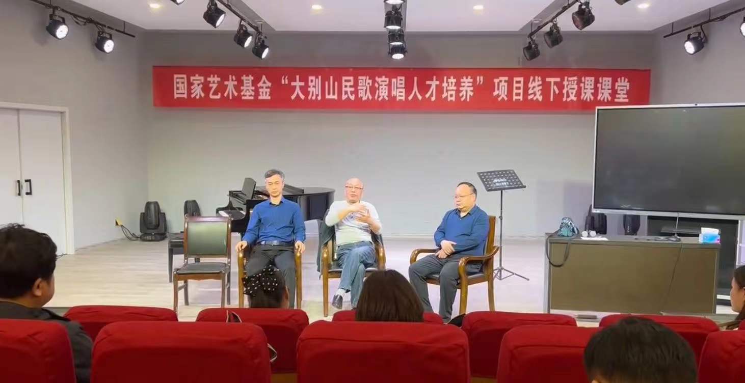 3月15日晚上,国家艺术基金“大别山民歌演唱人才培养”项目第二次研讨会在我校艺术楼107八音讲堂召开,出席会议的有合作方艺术总监刘宏奎主席,太阳集团tyc234cc陈新宇院长,任远副院长,项目主持人韩冰老师以及学院青年教师等。
