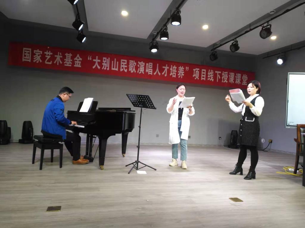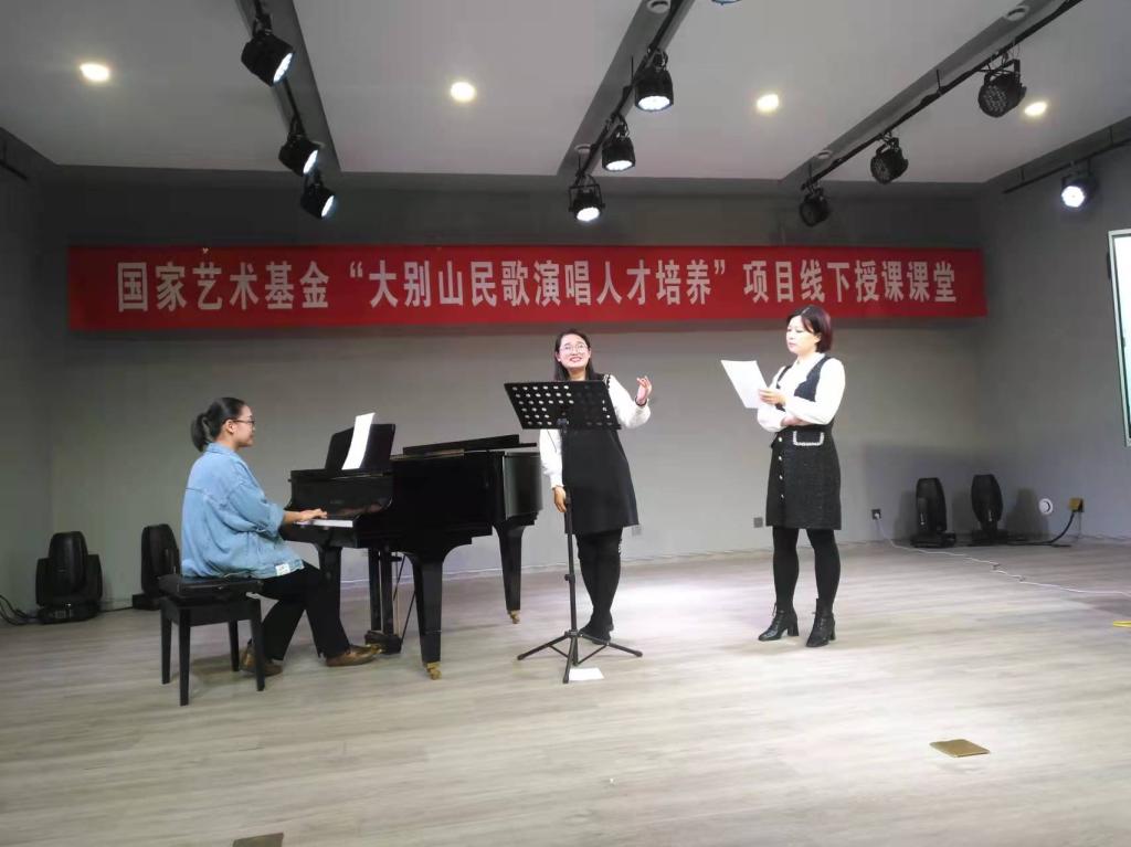 3月15日下午,国家艺术基金“大别山民歌演唱人才培养”线下授课课堂在我校如期进行。河南省著名女高音歌唱家陈静,受邀来到我校太阳集团tyc234cc八音讲堂,以《声乐舞台上的表演和演唱》为题进行线下授课。
