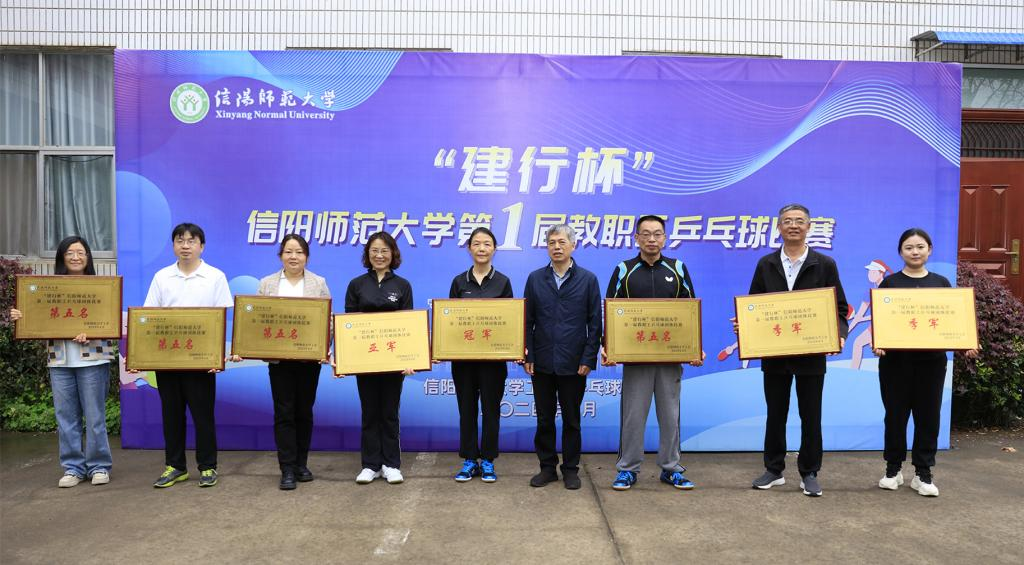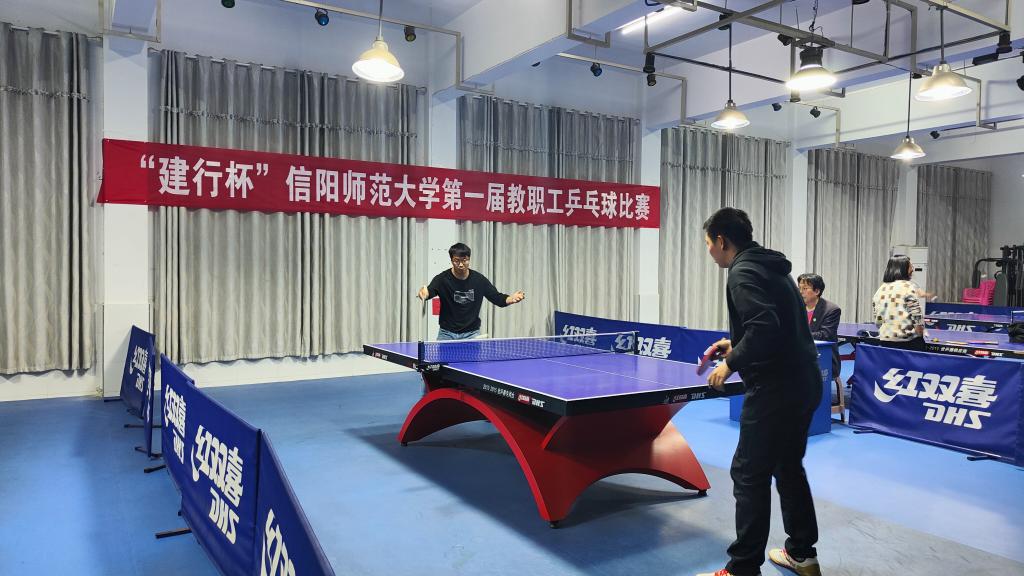 4月9日至16日,由校工会主办,教职工兵乒球协会承办,图书馆、国际教育学院、外国语学院协办的信阳师范大学首届“建行杯”教职工乒乓球比赛成功举行。校党委副书记、工会主席岳宗德,建设银行信阳分行副行长石卫东出席开幕式,校工会、体育学院、乒乓球协会负责人以及来自26支分工会代表队的200余名乒乓球爱好者参加了开幕式。