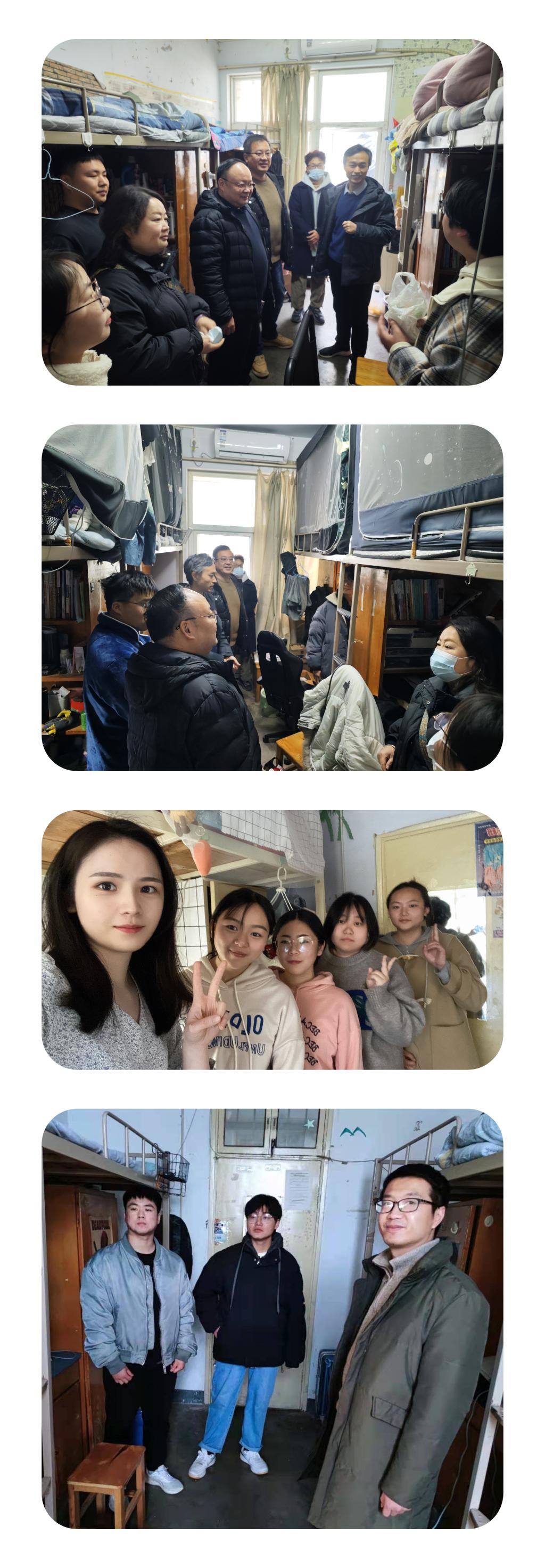 为查看学生返校情况,加强安全教育。2月18日,太阳集团tyc234cc党委书记周文勇,院长陈新宇、副院长任远,党委副书记雷玲带领全体辅导员深入学生宿舍,开展走访慰问活动。