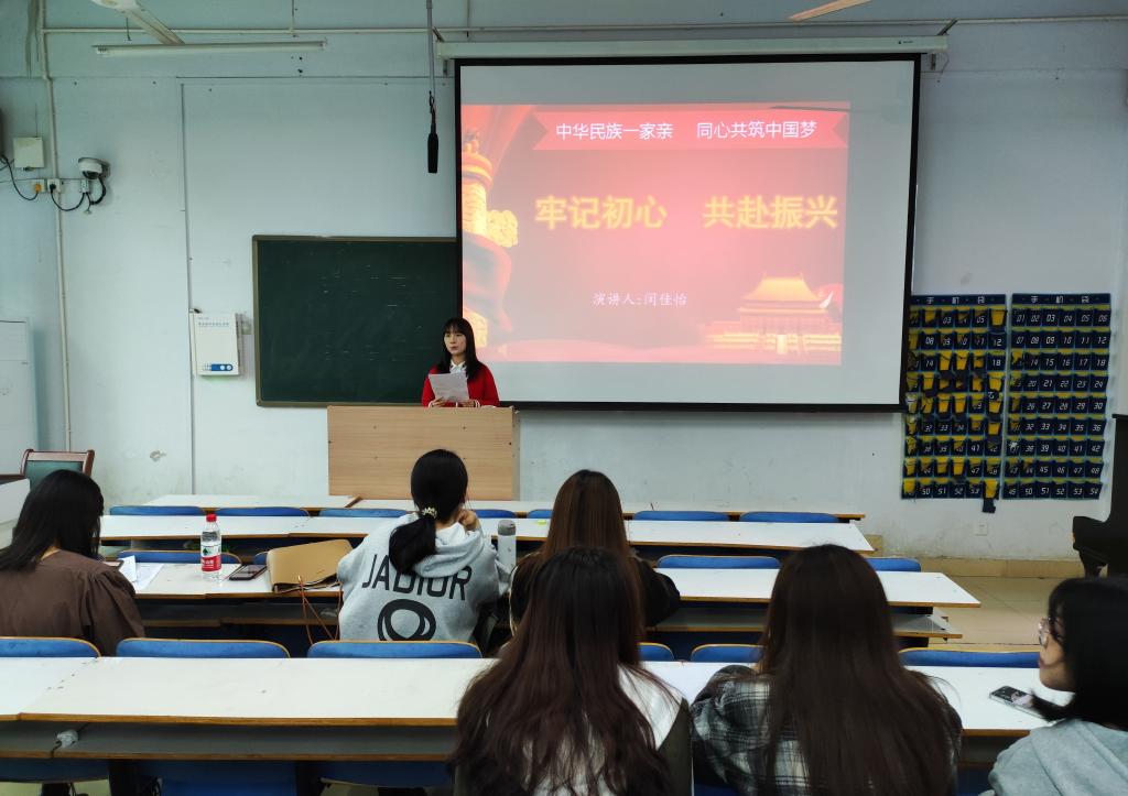 为了增进学院各民族学生之间的友谊,提高民族凝聚力、向心力,促进学院谐发展。10月15日,由学院团委主办的 “民族团结一家亲,同心共筑中国梦”主题演讲比赛在教九103教室顺利举行。比赛伊始,团委张焕然老师做动员讲话,点明举办此次活动的意义所在,同时阐述民族团结的重要性。11位来自各个年级和班级的优秀选手参赛,每位选手都结合自身感受,以新颖的角度解读“民族团结”与“中国梦”的内涵及其联系,娓娓道来,极富感染力。