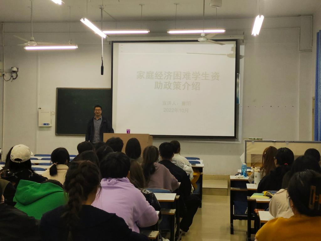 10月20日、10月25日,我院在教九楼103教室、203教室面向2022级新生召开资助政策宣讲会,宣讲会由我院资助专员曹阳老师主讲,2022级全体新生参会。