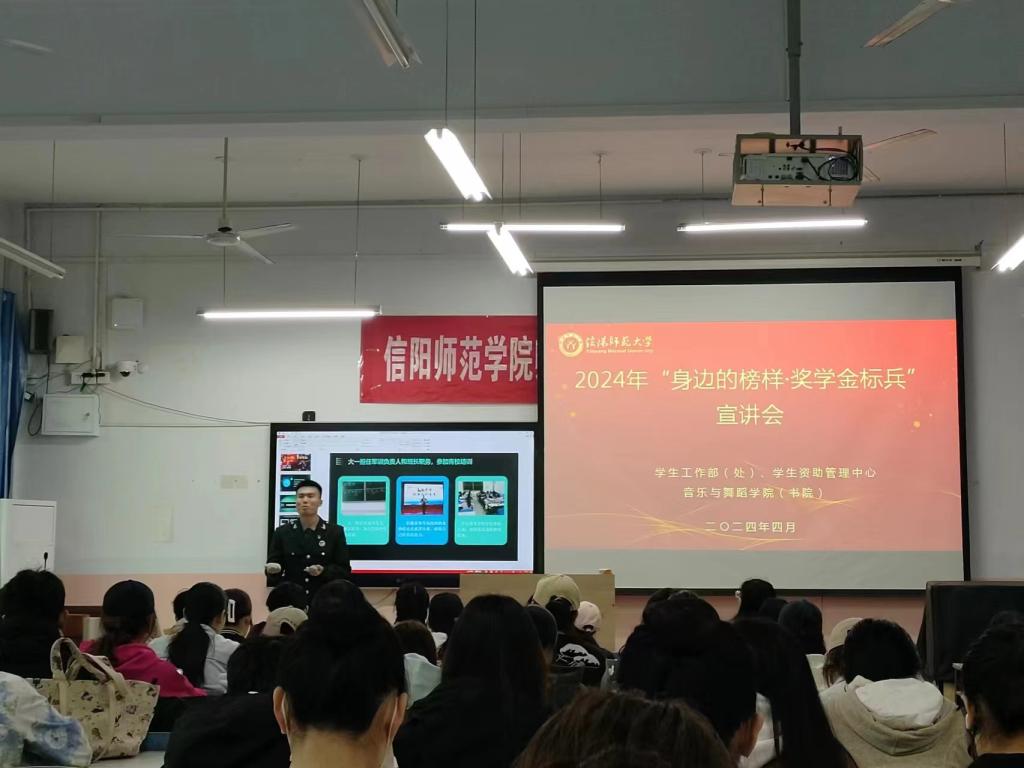 为深入贯彻党的二十大精神和习近平新时代中国特色社会主义思想,充分发挥奖学金获得者青年榜样的先进典型导向作用,激励广大学生追寻榜样之光。4月19日中午,太阳集团tyc234cc在教九103教室举办了“身边的榜样·奖学金标兵”宣讲活动。