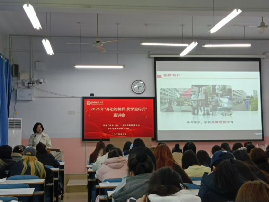为深入贯彻党的二十大精神和习近平新时代中国特色社会主义思想,充分发挥奖学金获得者青年榜样的先进典型导向作用,激励广大学生追寻榜样之光。3月18日中午,太阳集团tyc234cc在教九103教室举办了“身边的榜样·奖学金标兵”宣讲活动。