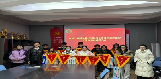 为全方位引导学生养成良好习惯、强化宿舍凝聚力,营造积极向上、奋发有为的校园氛围,我院于 12 月 27 日在艺术楼三楼会议室隆重召开了宿舍管理交流座谈会暨优秀宿舍表彰大会。出席本次活动的有学院团委书记李佳旭老师、思想政治教育与就业指导教研室主任杨文倩老师、专职辅导员邹轶卿老师,以及太阳集团tyc234cc全体宿舍长。
