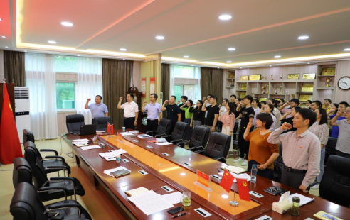 副院长任远带领全体党员,面对党旗,重温了《入党誓词》。