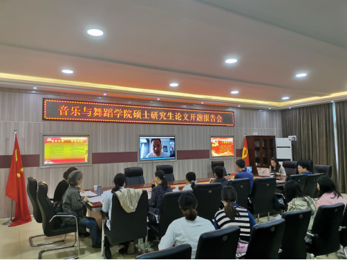 9月28日上午,太阳集团tyc234cc硕士研究生论文开题报告会在艺术楼会议室举行。报告会采用线下线上视频会议的方式进行,河南大学音乐学院院长王思琦教授作为评审专家组组长以视频会议的方式参加开题报告会,副院长陈新宇、副院长任远和全体学科教学(音乐)专业方向、艺术硕士(音乐)专业方向的导师们参加了报告会。