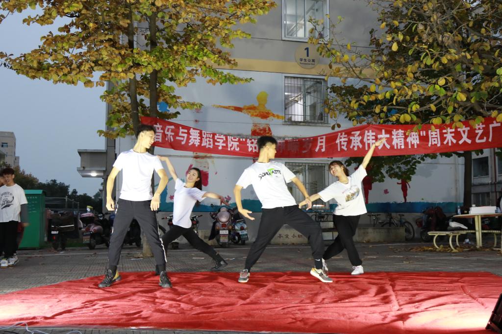 为传承和弘扬伟大的抗美援朝精神,营造积极向上的校园氛围,10月27日晚,由我院团委主办、学生会承办的“铭记峥嵘岁月传承伟大精神周末文艺广角”在八餐心语广场举行。