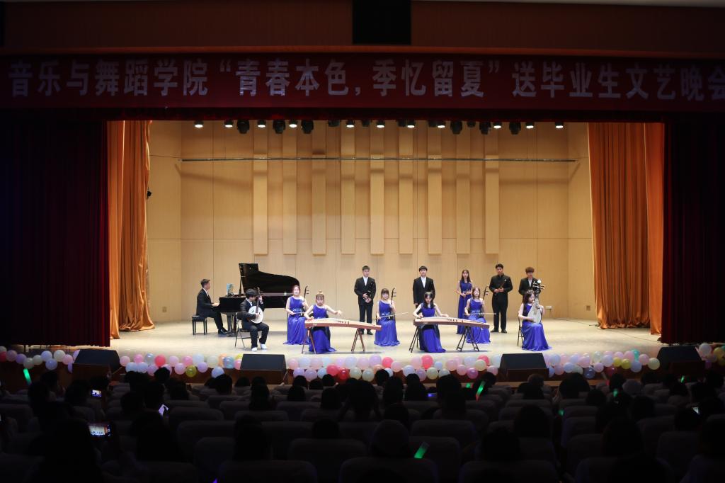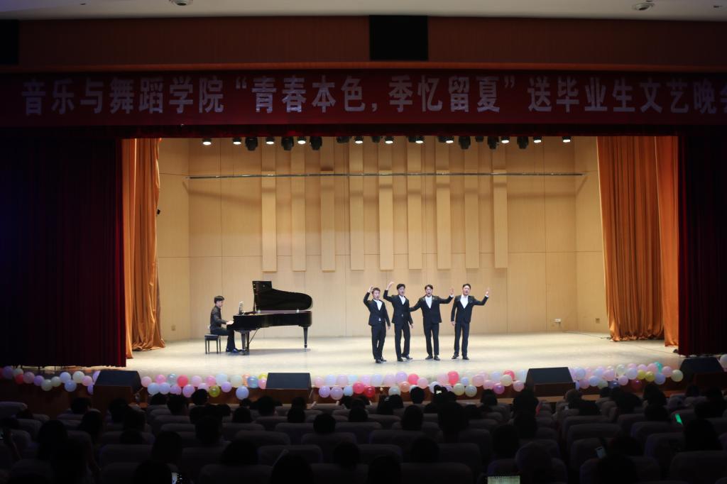 本次晚会以“青春本色,季忆留夏”为主题,节目丰富多彩,涵盖器乐、演唱、舞蹈、乐队等多种表演形式,为观众带来了《友谊地久天长》《书简》《大写的中国》《白日梦蓝》《起风了》等14个节目。晚会在街舞协会带来的舞蹈《遇见》中火爆开场,女生独唱《星星在唱歌》旋律柔和清新,带领现场观众走进毕业离别淡淡的忧伤;一首《友谊地久天长》勾起大学四年美妙的回忆,唱出了对同窗情谊、对母校的依依不舍;声乐歌曲《我的太阳》用娴熟的演唱技巧展现出声乐的魅力,表达了对社会生活的向往;朗诵《大写的中国》铿锵有力,表达了学子们把个人梦融入祖国腾飞的坚定决心;舞蹈《书简》、合唱《九张机》《那些年》,拉丁舞《狮吼》,街舞《Shaking the word》轮番上演,不断推进晚会走向高潮。晚会期间播放了视频,学院领导老师与学弟学妹们依次送上对毕业生的美好祝福。由吉他协会带来的《披星戴月的想你》《白日梦蓝》鼓励毕业生们不忘初心,大胆追梦。最后晚会在合唱《起风了》中圆满落下帷幕。