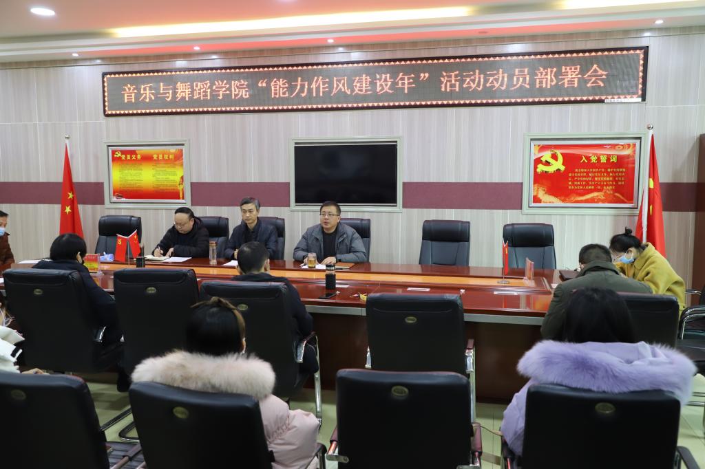 为贯彻落实省委、省高校工委和学校党委关于开展“能力作风建设年”活动要求,1月11日下午,学院在艺术楼“党员之家”会议室召开“能力作风建设年”活动动员部署会。党委书记周文勇、院长陈新宇、副院长任远出席会议,科级干部、党支部书记参加会议。会议由任远主持。