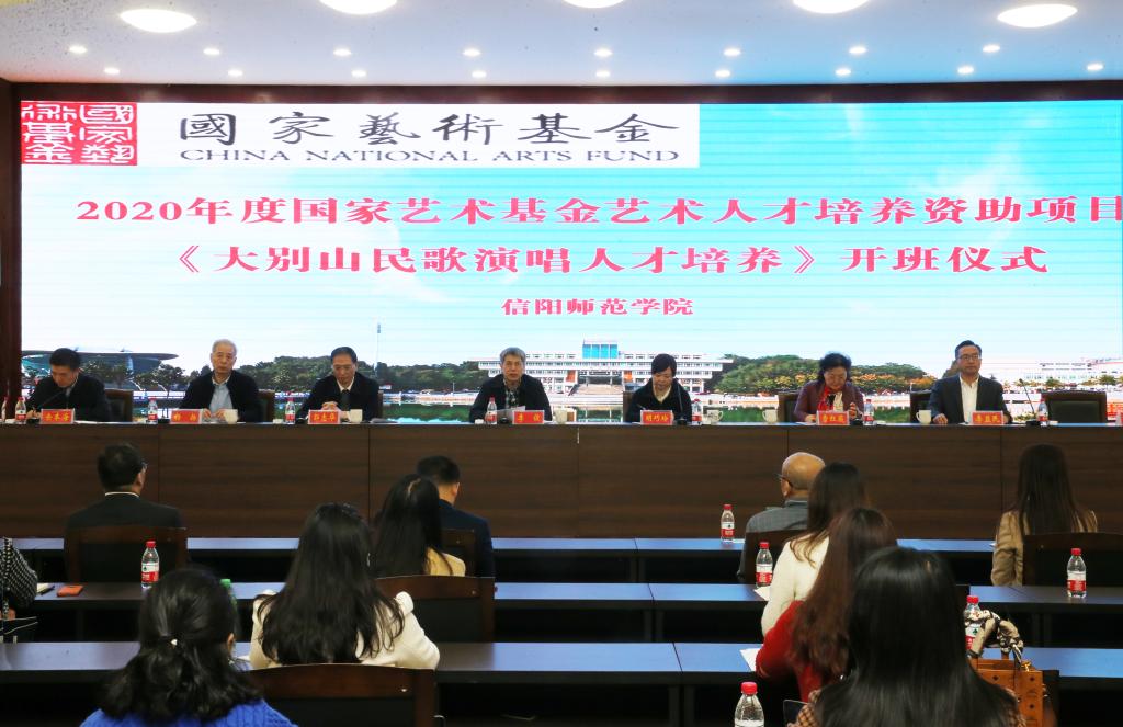 李俊校长在致辞中指出,国家艺术基金“大别山民歌演唱人才”项目是学校重点关注的项目,是学校在倡导“新文科”理念下实施艺术学科“三全育人”发展的新方向。作为大别山高校联盟首倡高校,我校一直扎根老区,立足大别山,服务中原,努力建设大别山区域高水平综合性师范大学和河南省特色骨干大学。此次国艺项目的成功获批和举行,对我校是一种肯定,更是一种责任。为保障项目顺利进行与圆满实施,李俊校长强调:一要提高站位,充分发挥地域优势,弘扬大别山精神,以全方位提升区域音乐文化事业的高度,深层次激发大别山文化和艺术的活力和发展潜能,为国家和大别山革命老区艺术教育事业和社会经济发展服务;二要按照项目要求规范实施,对标高质量、高标准的工作筹划和安排,遵循“小批量,高层次”的培训标准,培养传承大别山民歌文化和演唱艺术的专业人才,以艺术实践为前提,提升艺术技能,拓展艺术视野;三要统筹兼顾,通力合作。信阳师院始终重视科学与艺术的共同发展,始终坚持党对文艺工作的领导和方针政策,大力推进办学目标和特色,加强与大别山区域的深度融合,把根植中国大地办大学的精神深深地扎进这片红色土壤中,集合学校各方面力量确保项目顺利和圆满实施。