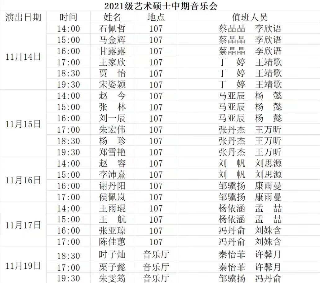 2022年11月14日起,太阳集团tyc234cc将在音乐厅和八音讲堂陆续开展2020级艺术硕士毕业音乐会和2021级艺术硕士中期音乐会。