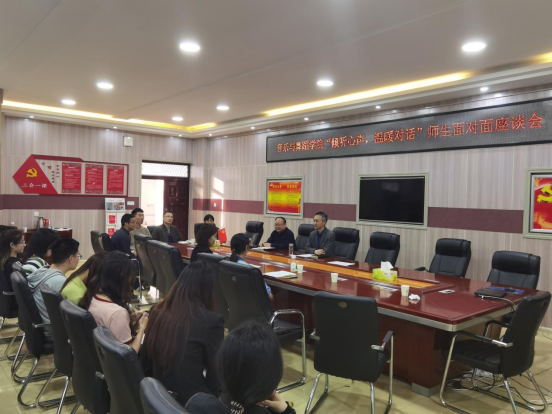 根据我院“倾听心声,温暖对话”主题教育活动方案,3月30日下午我院在艺术楼三楼会议室召开了“倾听心声,温暖对话”主题教育师生面对面座谈会,院长陈新宇、副院长任远、各教学组织负责人以及各年级学生代表参与座谈会。