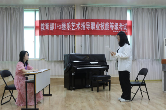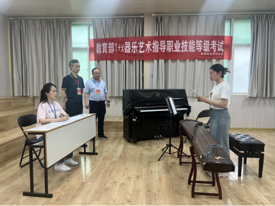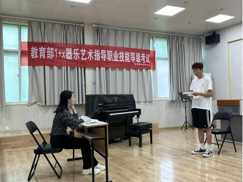 为贯彻《国家职业教育改革实施方案》精神,积极开展“1+X”证书制度试点工作,5月19日至20日,2023年度“1+X”器乐艺术指导职业技能等级证书考试在我校顺利开考,太阳集团tyc234cc为我校音乐学、音乐表演专业69名学生提供此次技能考核服务。