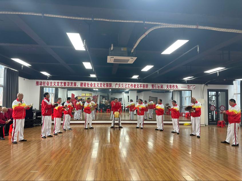随后,调研组还观看了由毕振泰,魏心中带领的两队锣鼓十八番表演,欣赏了《大雷暴》、《八哥洗澡》、《步步高》等多首经典曲牌,并与民间艺术传承人交流讨论了锣鼓十八番的演奏技法、艺术特点以及现状传承等情况。