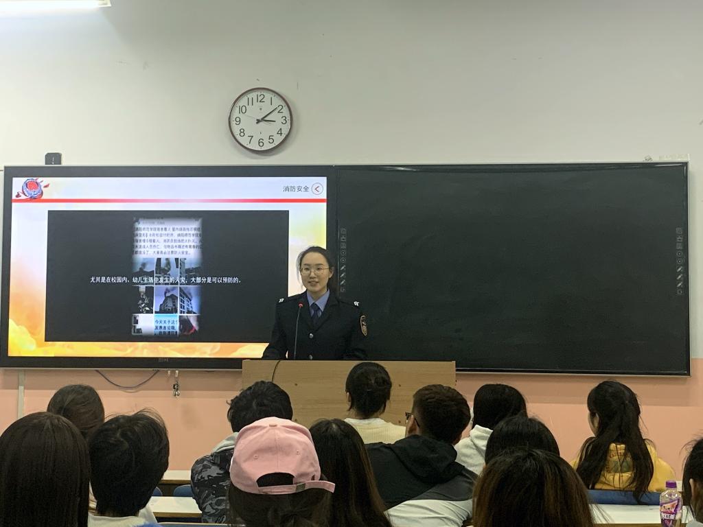大学生校园文明纠察队向同学们进行知识宣讲,从火灾及预防、失火逃生、灭火用具和常见消防标志等各个方面,进行了全方位的讲解。以由于不同原因而导致的三起校园失火事件举例,向我们介绍了6种火灾类型以及灭火器的种类和常见的消防标志。随后又向大家讲解了失火逃生的相关知识。告诫同学们切勿慌张,保持镇定,做到“三同时”,即“报警、灭火、逃生”。
