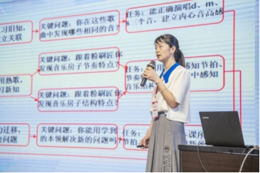 朱银华老师以课例录像分享的方式,借鉴柯达伊教学法的基本理念与教学手段,充分体现“概念教学绑定具体作品”的原则,在一年级课例《粉刷匠》中设置“和粉刷匠学习本领”的情境,运用学生熟悉的多个教材进行节奏练习,并关注重点三个音学习迁移应用,从而积累提高学生的学习经验和能力。