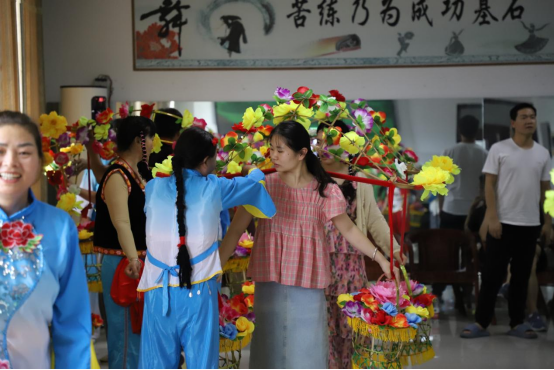 下午,学员们和校企工作人员一同进行了对非物质文化遗产——“花挑舞”的参观和学习活动,亲身体验了花挑舞的魅力。他们观看了由当地传承人呈现的花挑舞表演,每一个舞步都充满了力量与美感,让人赞叹不已。这些表演不仅展示了花挑舞的技艺,更传递了深厚的文化底蕴和历史故事,让学员们感受到了非物质文化遗产的鲜活与生命力。更令人印象深刻的是,学员们还有机会参与了花挑舞的实践学习。在花挑舞演员的指导下,他们手持花挑,尝试着模仿表演者的舞步,那份投入与热情以及对传统文化的尊重与向往,都通过镜头记录了下来,成为了一段段珍贵的影像资料。