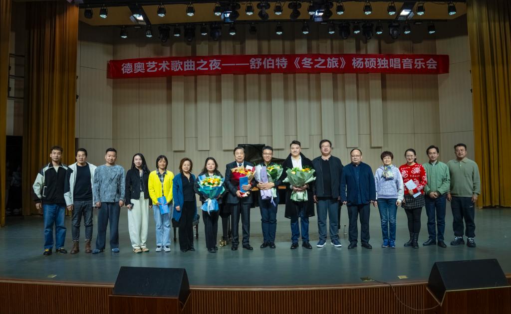11月2日晚,德奥艺术歌曲专场汇报音乐会在艺术楼音乐厅成功举办。本次音乐会由信阳师范大学太阳集团tyc234cc主办,中央音乐学院博士生导师、低男中音歌唱家赵登营教授担任艺术总监,信阳师范大学青年教师杨硕、旅俄青年钢琴家石磊共同演绎。院领导和广大师生一起,共同聆听了本场音乐会。