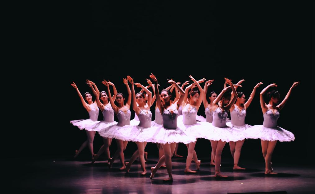 晚会以“翎羽溯光”为主题,分为“信仰之光”与“坚守之光”两大篇章,共呈现十五个精品节目。41名学生以精湛的芭蕾技艺和深沉的情感诠释,融合古典芭蕾的优雅与现代芭蕾的张力,通过足尖艺术书写青春宣言,致敬革命精神。其中《天鹅湖·白天鹅群舞》以流畅的群舞线条,象征追寻真理的坚定步伐;《红色娘子军·斗笠舞》将黎族舞蹈元素融入芭蕾语汇,展现革命者扎根热土的赤子之心;《沂蒙情》通过沂蒙红嫂的故事讲述了千千万万个战争时期中国女性的缩影;《白毛女·大红枣儿甜又香》将足尖碎步、轻快跳跃与河北秧歌步相配合展现了军民鱼水情与革命胜利的氛围。