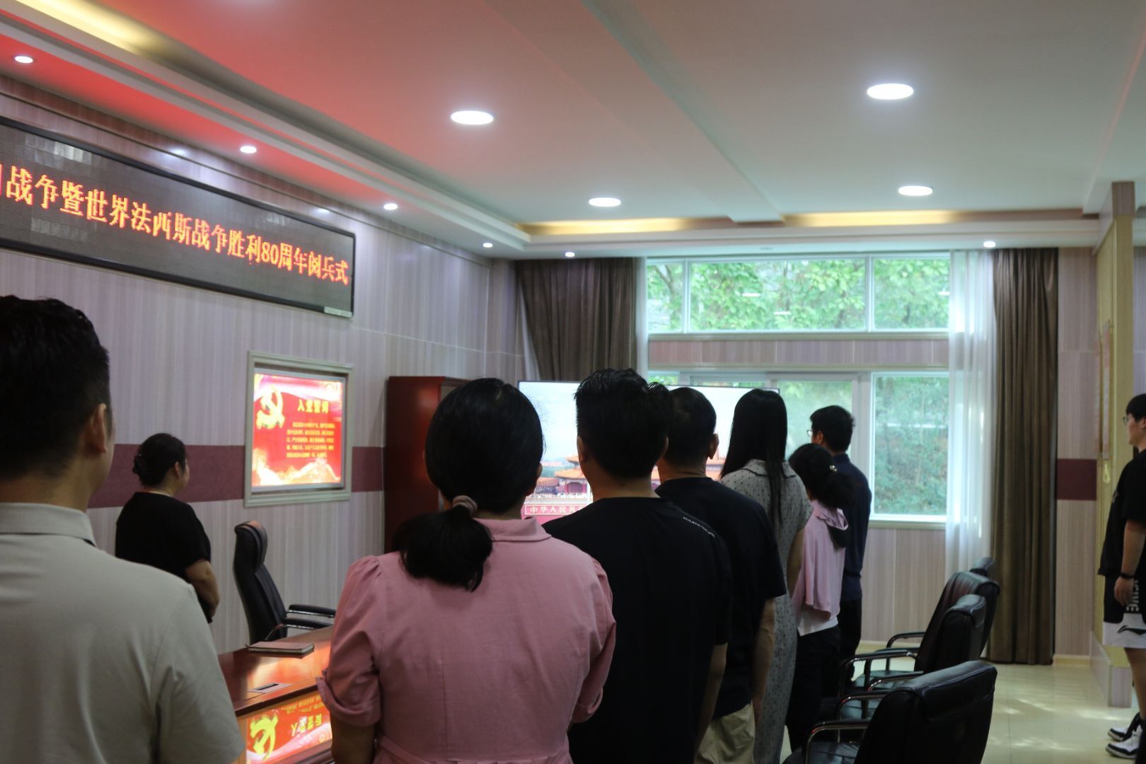 在艺术楼“党员之家”,师生党员代表们全体起立齐唱国歌,目光聚焦屏幕上天安门广场的盛大场景,共同感受强国强军的壮丽画卷。在教九楼,各班学生全神贯注,认真聆听习近平总书记发表重要讲话,深刻领会本次九三阅兵的重大意义。