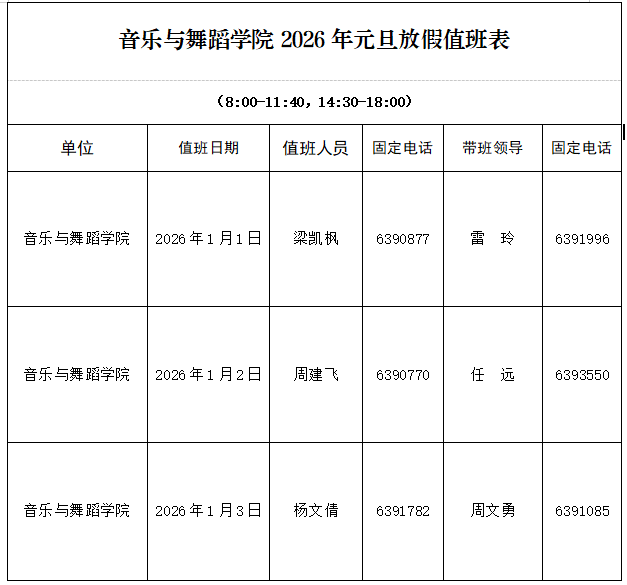 关键词:关于 2026 元旦 放假 学院 值班 安排 通知