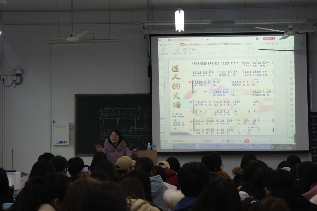 葛老师具体讲述了面试时的注意事项、授课方式和课堂设计教学方法等内容,通过《草原上》《迷人的火塘》《同伴进行曲》《草原就是我的家》等课例展示,让同学们亲身经历了一节生动活泼的课堂。
